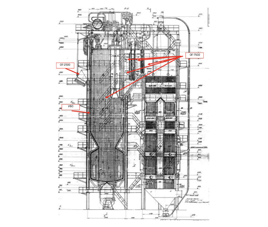 Пример установки парообдувочных аппаратов на котле БКЗ-270(320)-140 ПТ-5 Красноярской ТЭЦ-1 (схема)